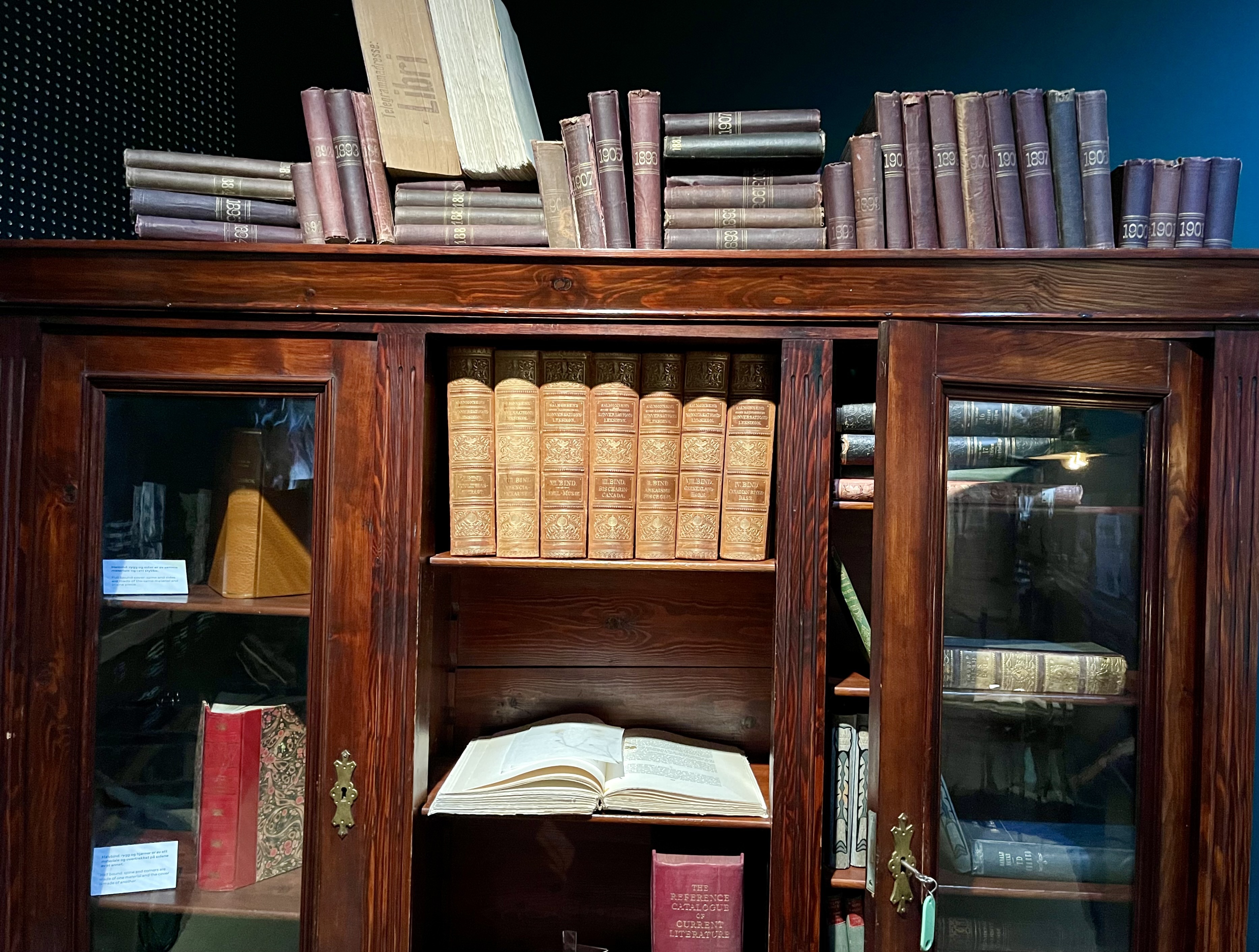 Og her er det selvsagt vakkert innbundne bøker. Utstillingen viser bøker fra museets egen samling, fra Stavanger byarkiv, Sølvberget bibliotek og fra lokale kunstnere.