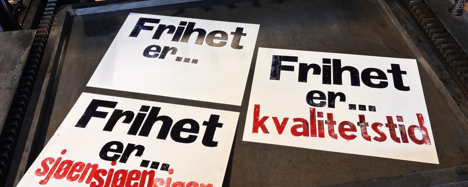 Stikk innom Trykkeriet på Norsk grafisk museum og lag din egen plakat med historiske teknikker. I dette åpne drop‑in‑verkstedet kan du eksperimentere med håndsatte typer og ekte trykksverte for å uttrykke hva frihet betyr for deg.