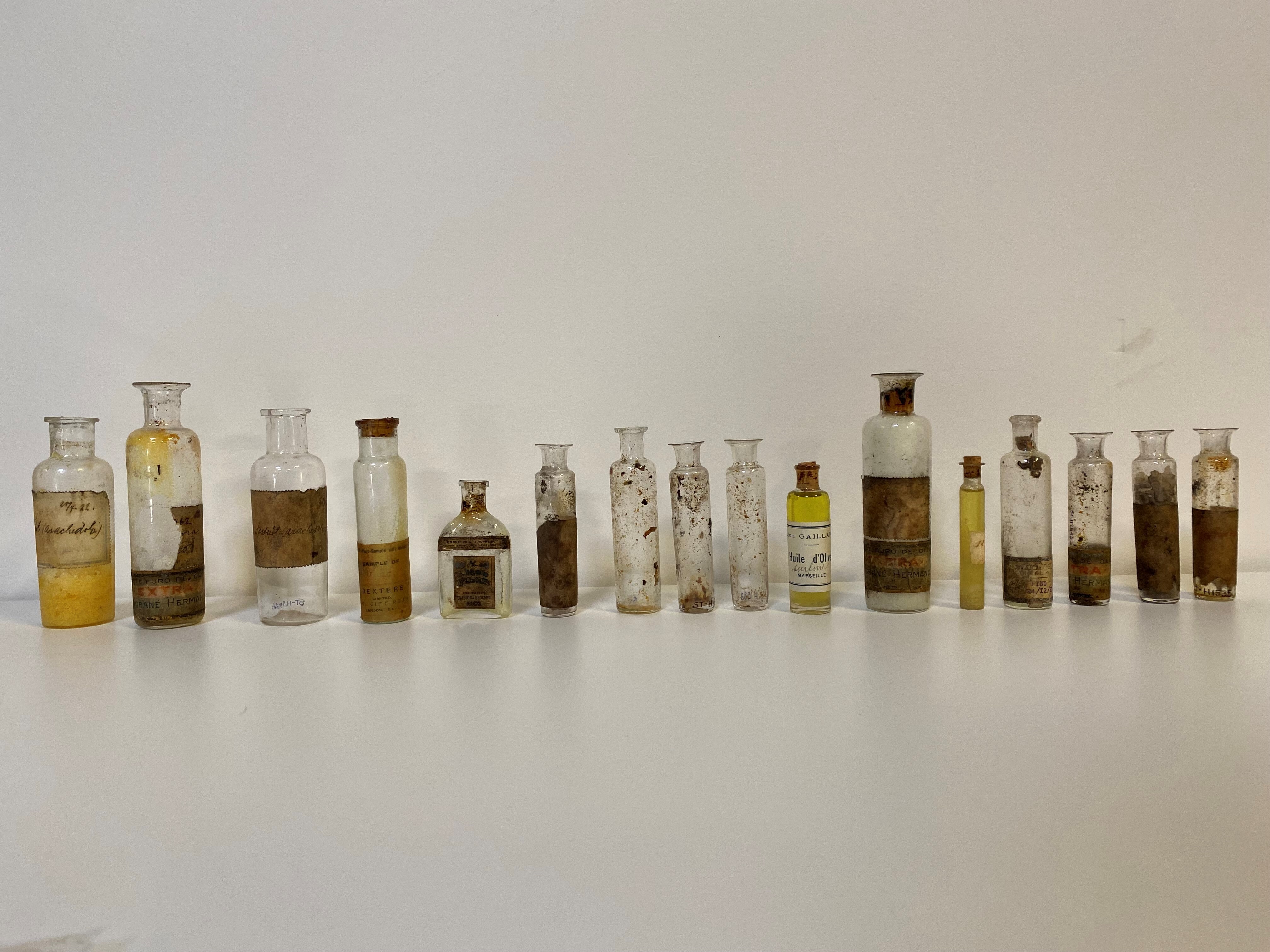 Flaskene er tomme nå, men var tidligere fylt med prøver av matolje brukt i hermetikkindustrien. Foto: Ingrid L. Tjemsland
