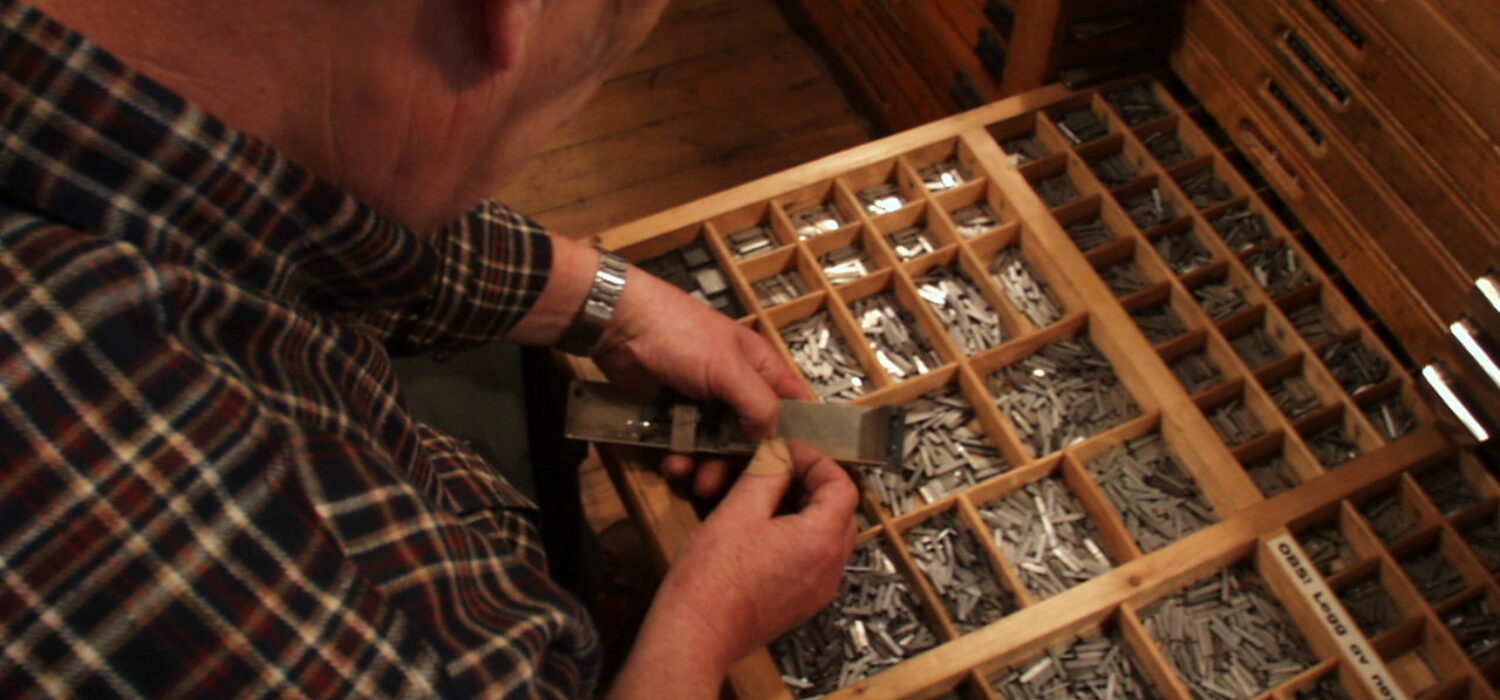 Se de første tre-fire minuttene av denne filmen for en demo av hvordan håndsetting av tekst foregikk.